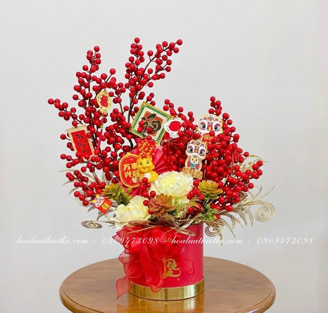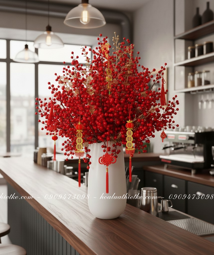 Hoa Lụa Thiết Kế nhận cắm các mẫu đào đông giả theo yêu cầu, thi công trang trí concept Tết, Giáng Sinh. Liên hệ hotline/zalo tư vấn báo giá: 0909473098.