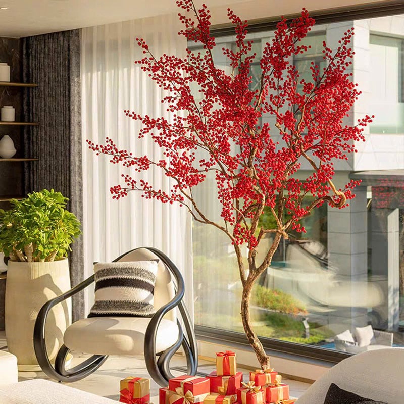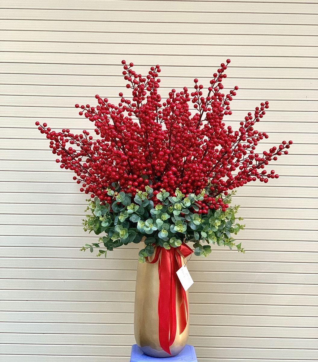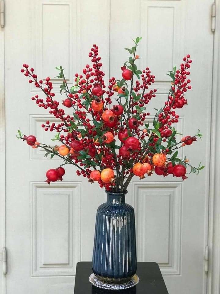 Đào đông (Winterberry) là loài cây có nguồn gốc từ các nước phương Tây (theo một số tài liệu, đào đông được nhập khẩu từ Mỹ hoặc Hà Lan), nổi bật với những chùm quả tròn đỏ cam rực rỡ bám dày trên cành trơ lá. Hình ảnh này mang nhiều tầng ý nghĩa sâu sắc, đặc biệt phù hợp để trưng bày vào dịp cuối năm và Tết Nguyên Đán.